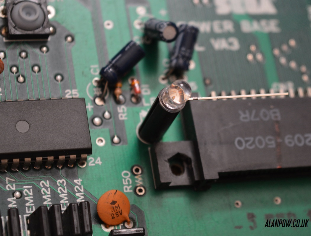 Then remove the resistor at R50. You can connect one led wire to the leg that sticks out remembering to heatshrink then fold it down and the other LED wire the R50 resistor was.